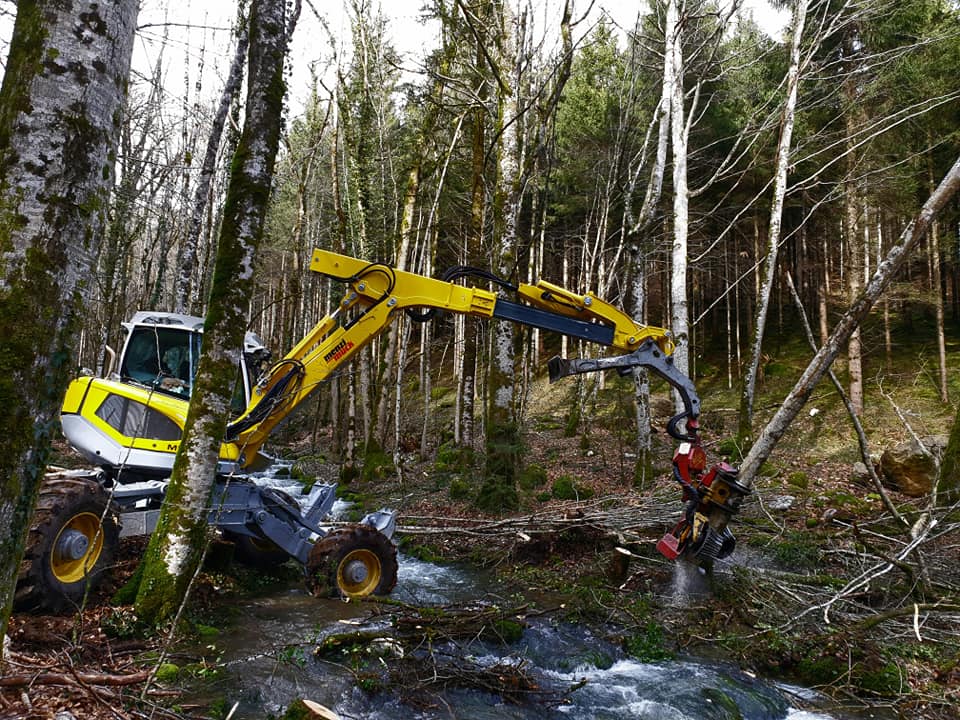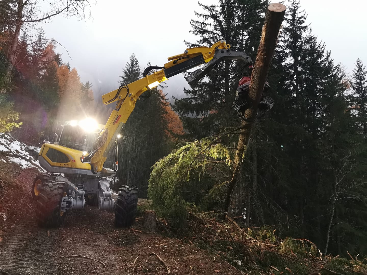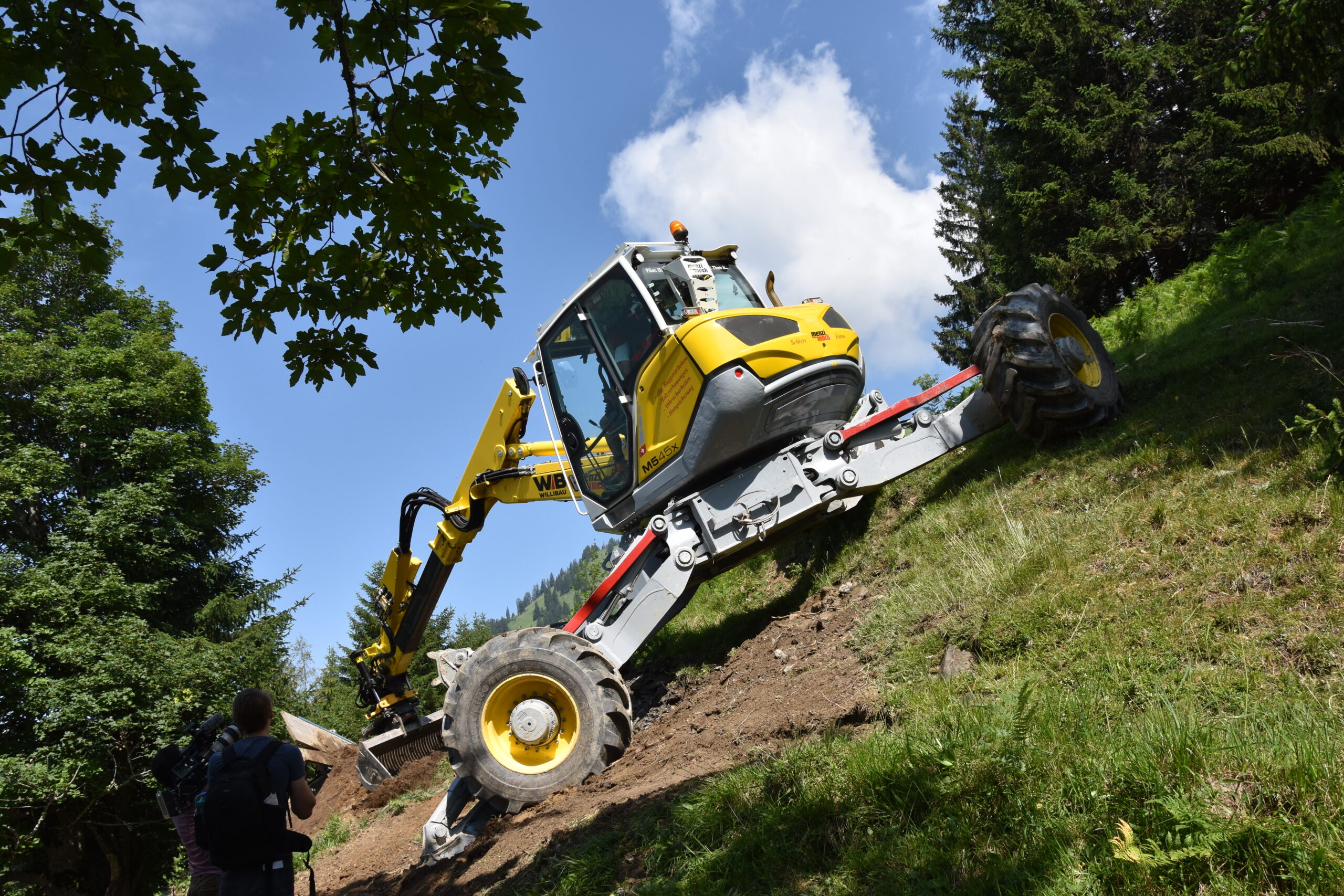 Hydraulisch verstelbare wielen: De M545x is uitgerust met vier gelijkmatig grote wielen, elk tot een breedte van 800 mm, die hydraulisch kunnen worden aangepast voor optimale stabiliteit en mobiliteit op diverse ondergronden.