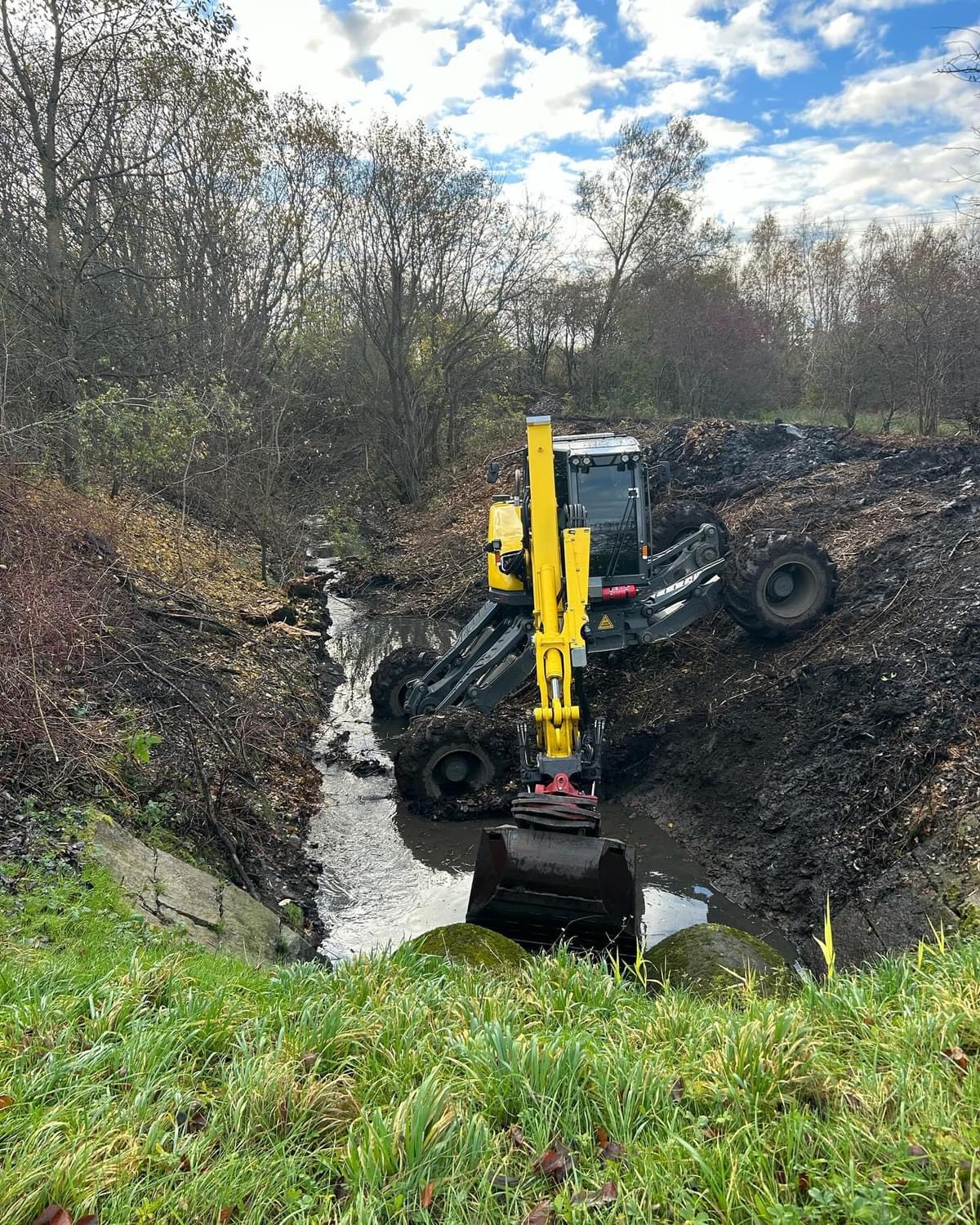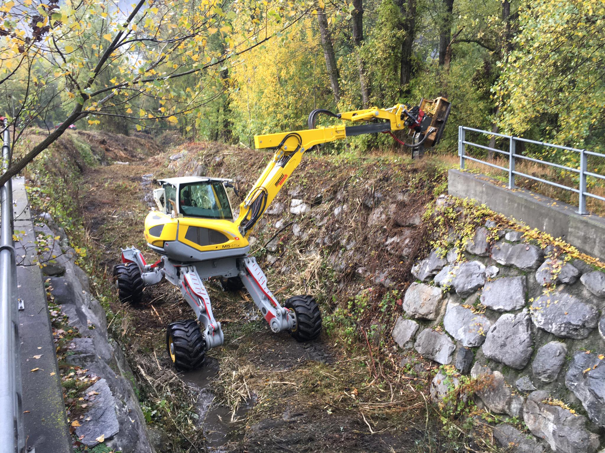 De loopgraafmachine dankt zijn bijzondere capaciteiten aan het ingenieuze hightech chassis en de gepatenteerde graafarm: verschillende hydraulische cilinders stellen de allrounder in staat om zijn wielen en voeten aan te passen aan elk terrein. In sommige landen wordt de Menzi Muck daarom ook wel spin graafmachine genoemd. Terwijl de kantelrand bij een rupsgraafmachine vast is, kan deze bij de Menzi Muck worden aangepast met behulp van de verstelbare wiel- en stabilisatiebalken, afhankelijk van de toepassing. Hierdoor kunnen hef- en scheurkrachten worden bereikt die met een conventionele graafmachine onmogelijk zouden zijn. Een Menzi Muck van 9,5 ton komt ongeveer overeen met de prestaties van een rupsgraafmachine van 20 ton.